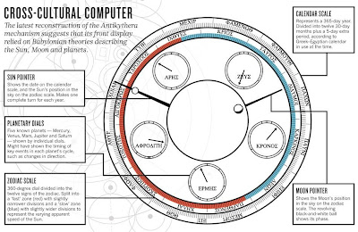 At the turn of the last century, a strange mechanism was found in a sunken shipwreck off the coast of a Greek island called Antikythera. The wreck itself has been dated back to sometime during the first century BC. For years the mechanism's use and construction was absolutely unknown leading people to speculate everything from alien technology to novelty automata. It's said to have the complexity and intricacies of a Swiss clock, especially in its precision in accurately calculating astronomical movements, for which it was designed and, as such, has been called the world's oldest analog computer.
