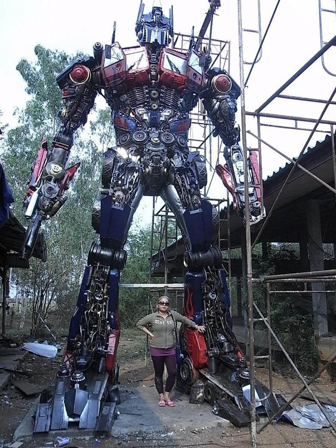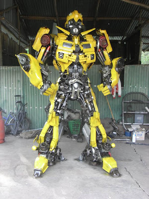 Anchalee Saengtai from Thailand makes life sized (or nearly life sized) Transformer sculptures out of recycled car parts and garbage. Check some of them out.